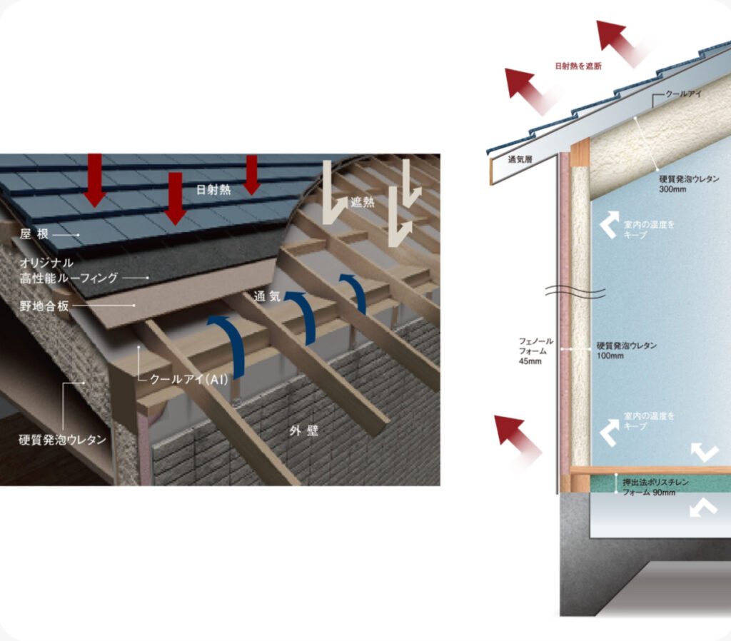 ・吹付発泡ウレタン300mm+クールAI(遮熱ボード)を採用。